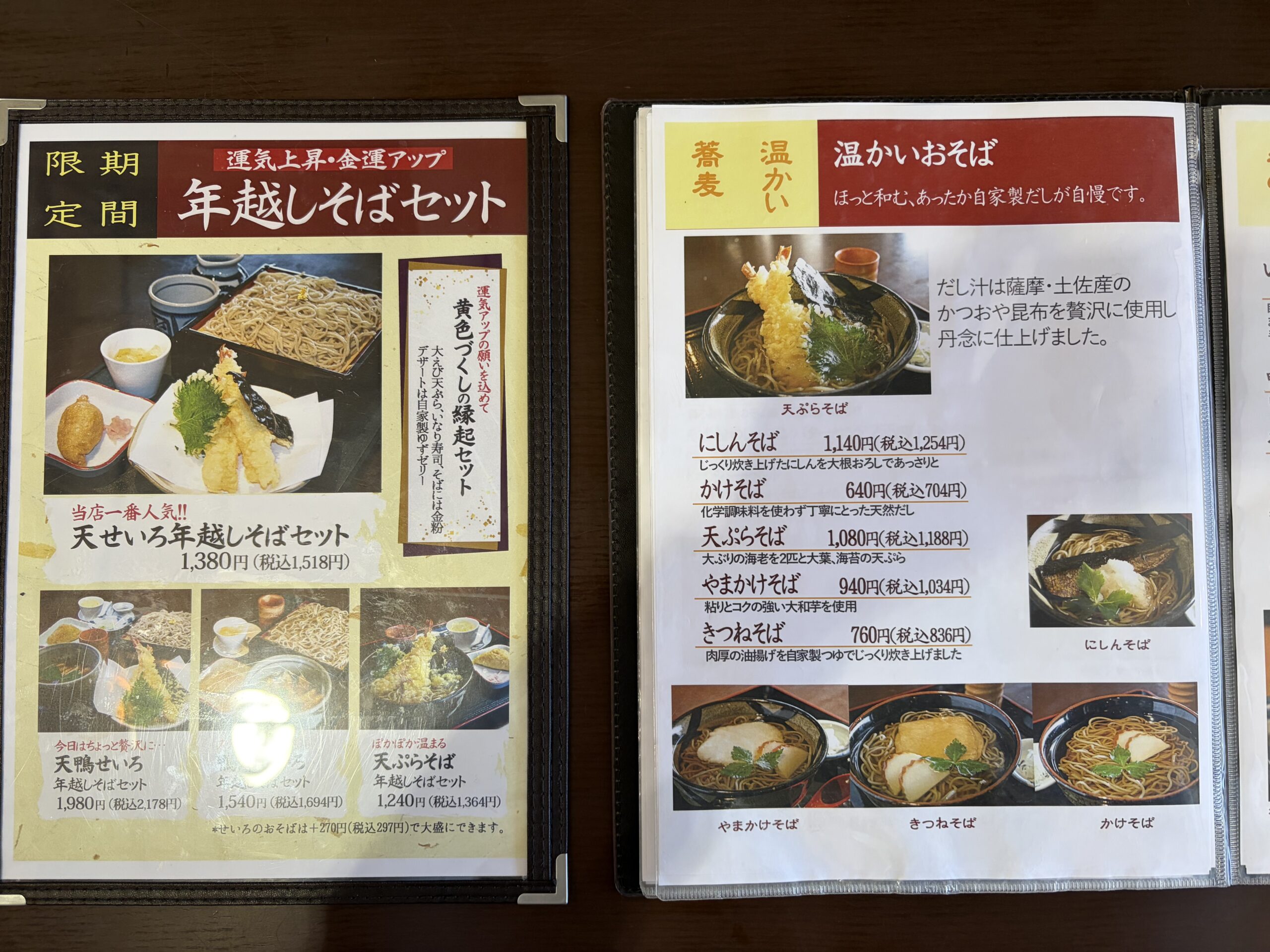 家内は「天せいろ年越しそばセット」、私は仕方なく「にしんそば」を注文。