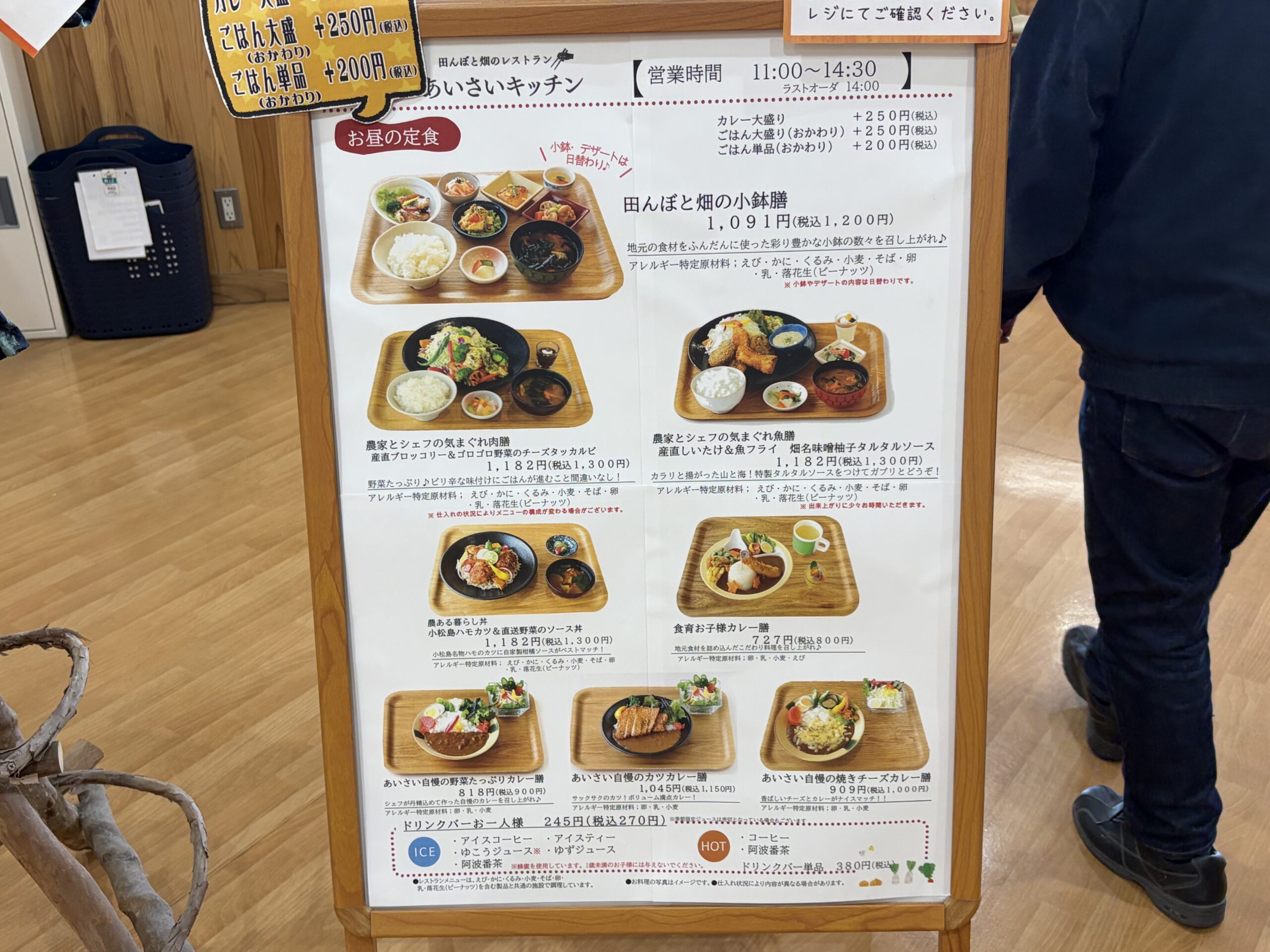 久しぶりに「あいさいキッチン」に買い出しに行きました。11時過ぎに店に着くと駐車場では2名の整理係の方が入場をコントロールされていて、店の中はたくさんのお客さまでごった返していました。野菜などを仕入れていつもの「あいさいキッチン」でお昼をいただくことにしました。