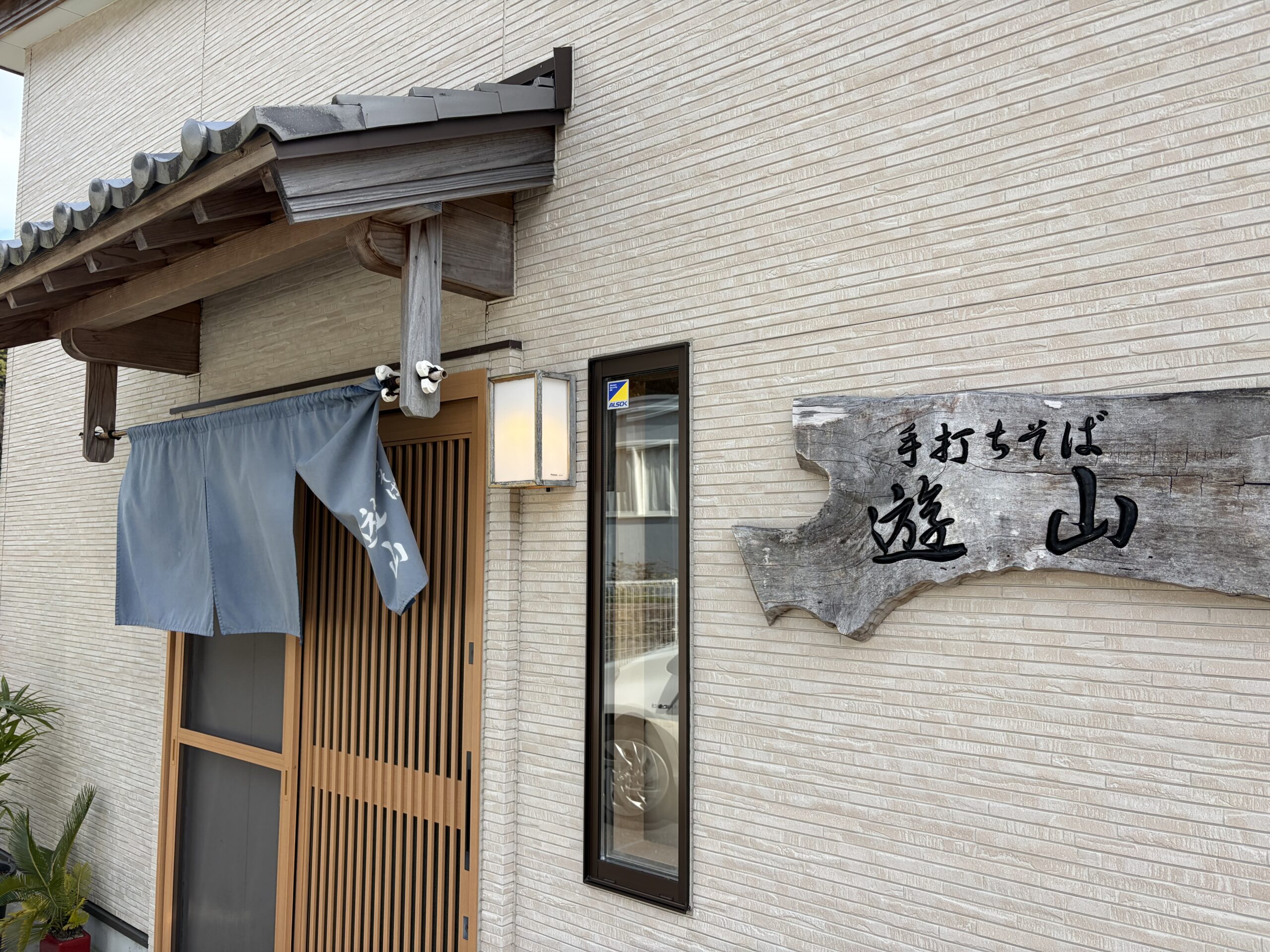 今日のお昼は先週食べられなかった遊山の「きのこそば」をいただくことにしました。開店時間の11時30分に店に着くと既に多くの車が停まっていました。店に入ってスタッフの方に空席待ちをお願いし、呼び出しベルを受け取って車の中で待つことにしました。我々の前に5組のお客さまが待っているとのこと。45分程待ってベルが鳴りました。