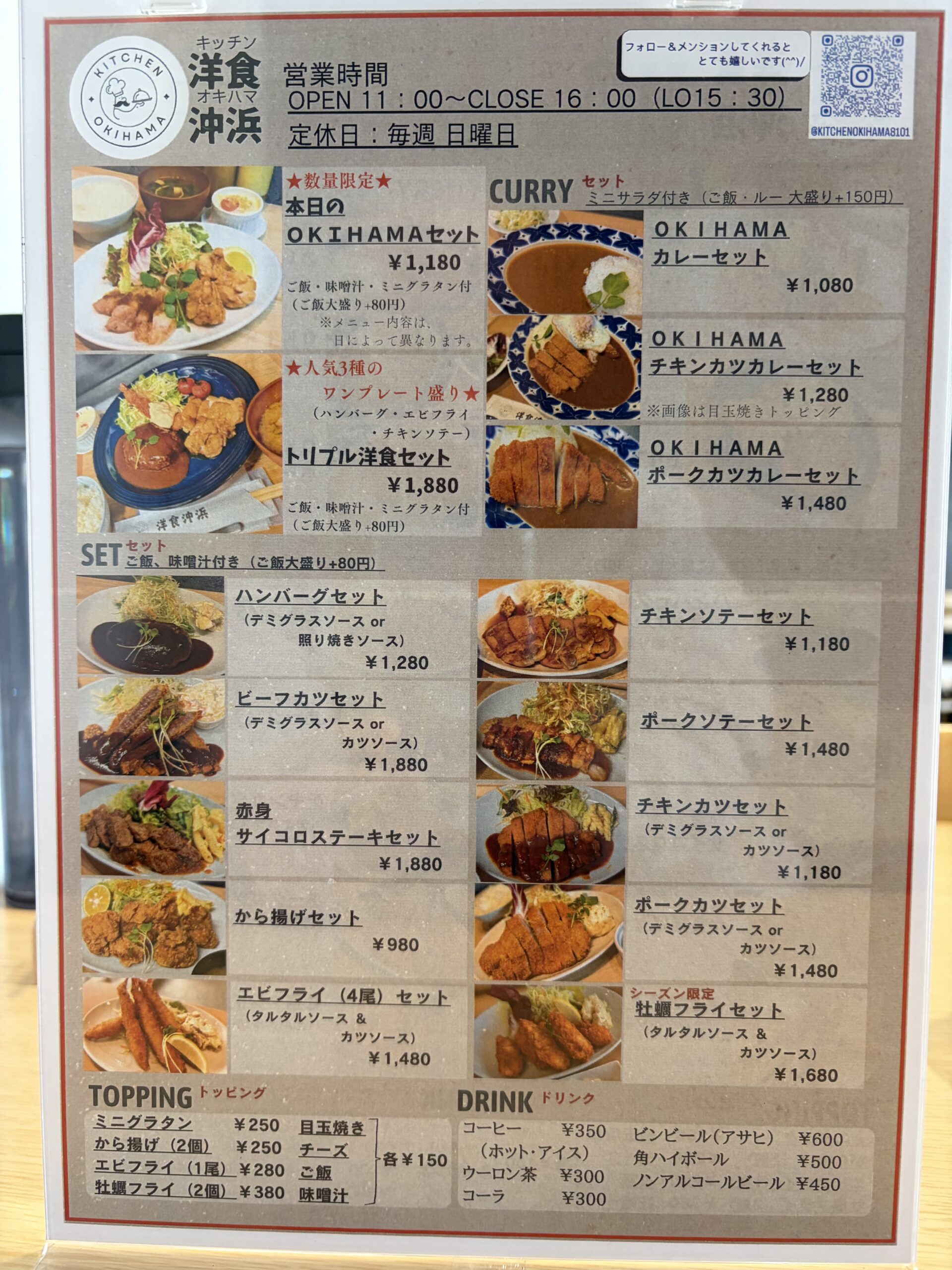 高齢者講習受講後、沖浜のふれあい健康館で頸動脈エコー検査結果報告を受けることになっているので、それまでの時間でお昼をいただくことにしました。車はふれあい健康館の駐車場に置いて、すぐそばの「洋食沖浜(キッチン オキハマ)」にお邪魔しました。初めてのお店です。