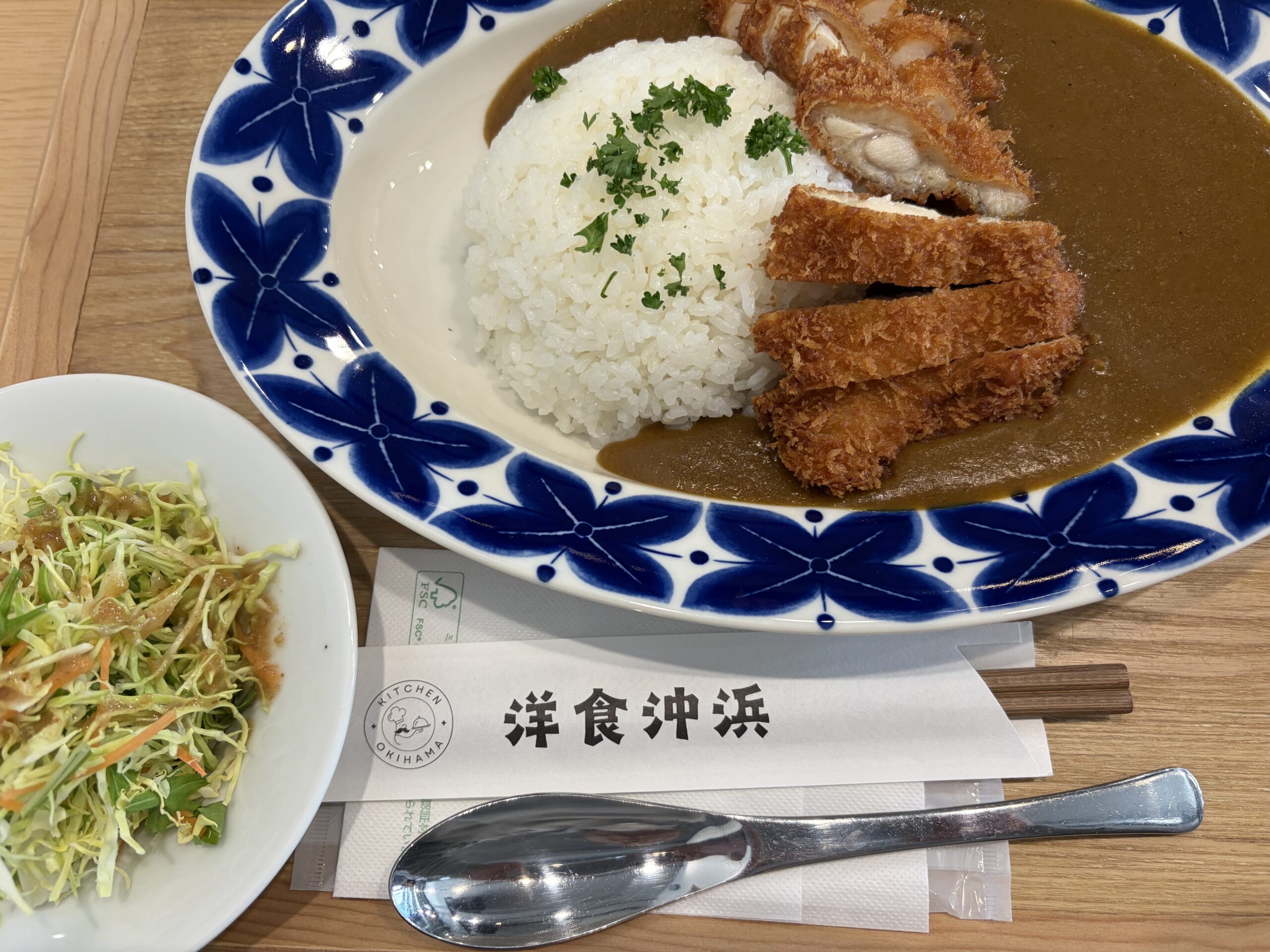 さっぱりと食べたかったので「OKIHAMAチキンカツカレーセット」を注文。20分過ぎに料理が運ばれてきました。