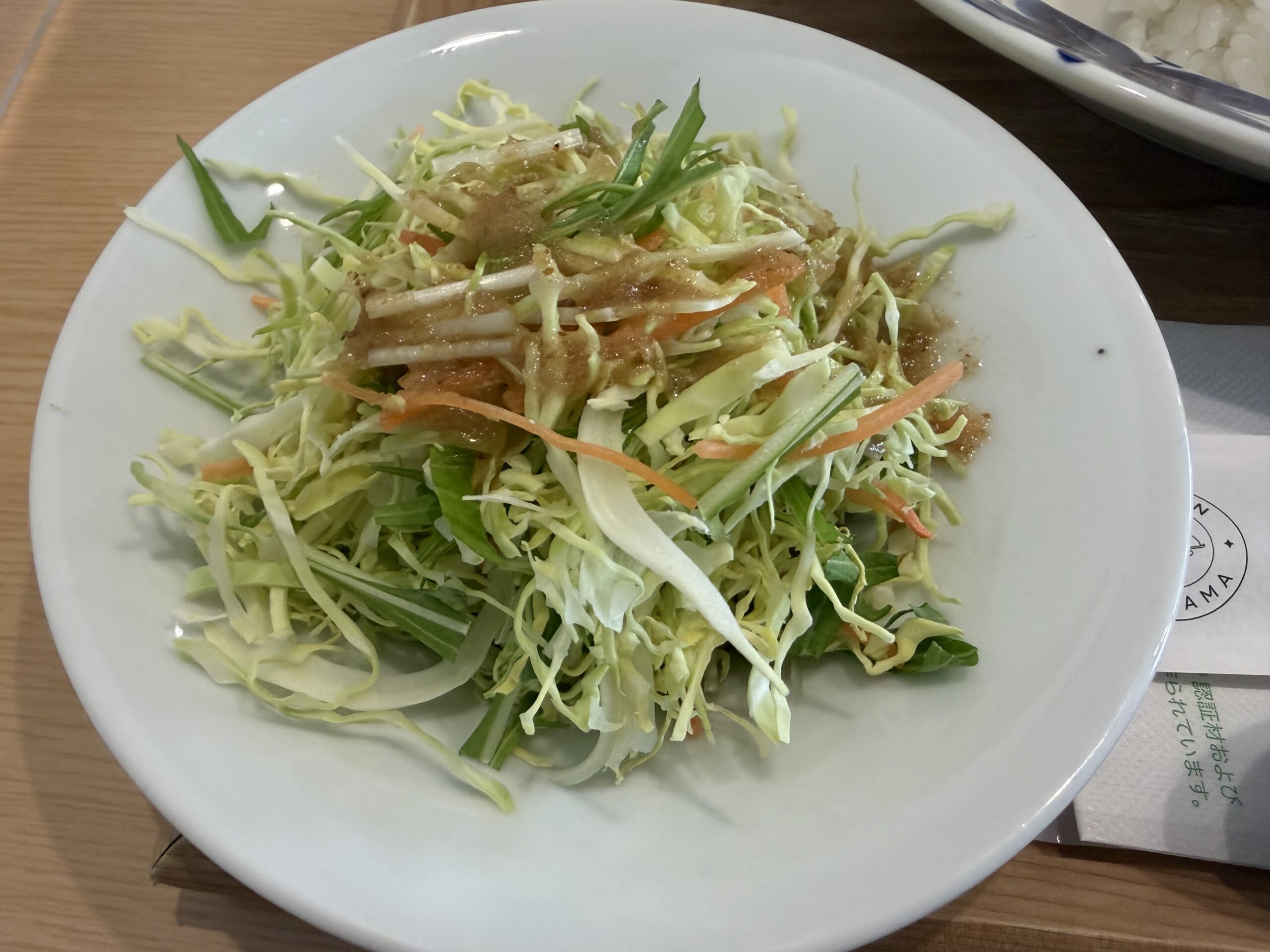 ミニサラダはシャキシャキの野菜と胡麻ドレッシングの相性が良くてカレーに合っていると感じます。