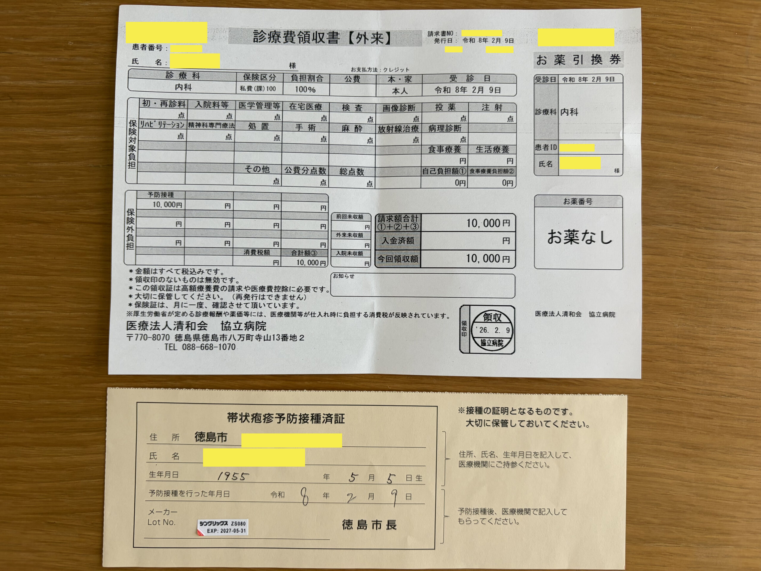 11月の第一回では21日の接種後から23日にかけて発熱が続きましたので、今回も寝込む覚悟で予診票(組換えワクチン2回目)を準備して共立病院に向かいました。