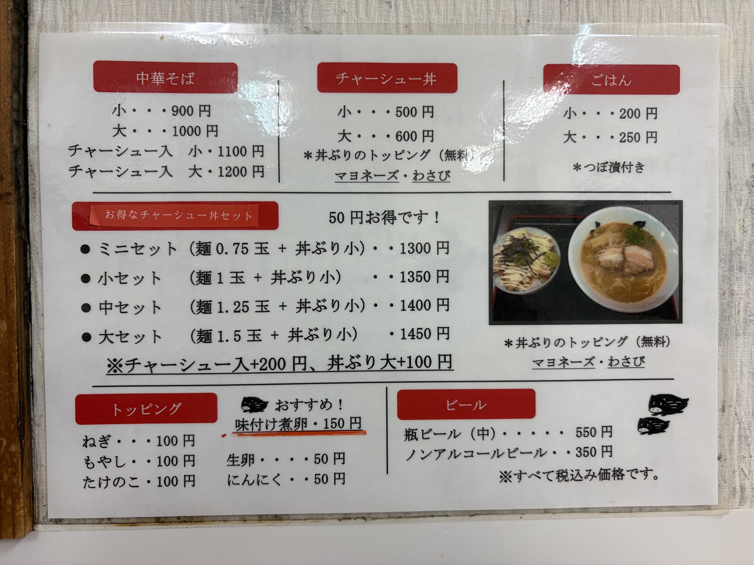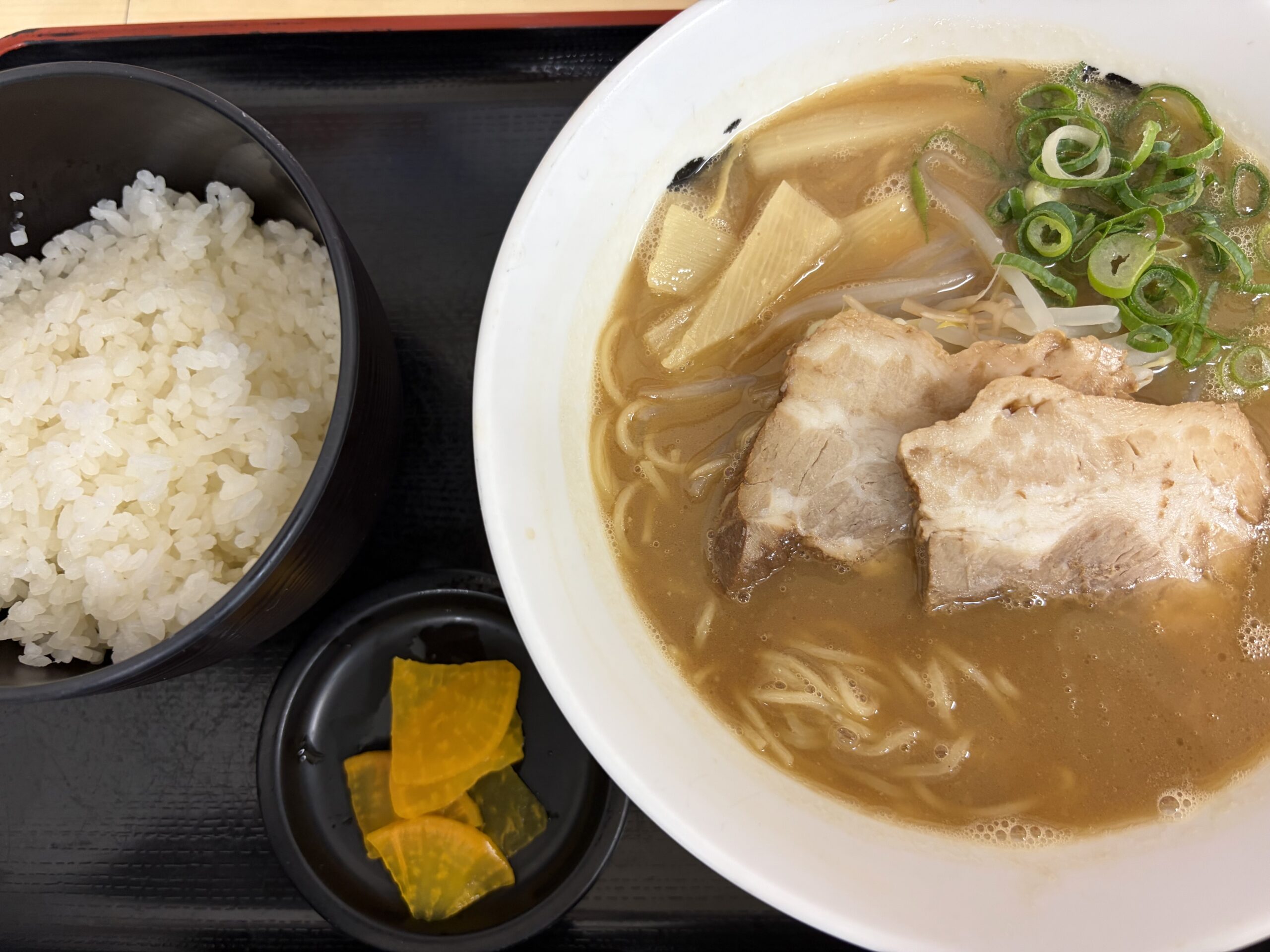 さすがに「チャーシュー丼」は無理なので「中華そば小」と「ごはん小」を注文。しばらくして料理が運ばれてきました。