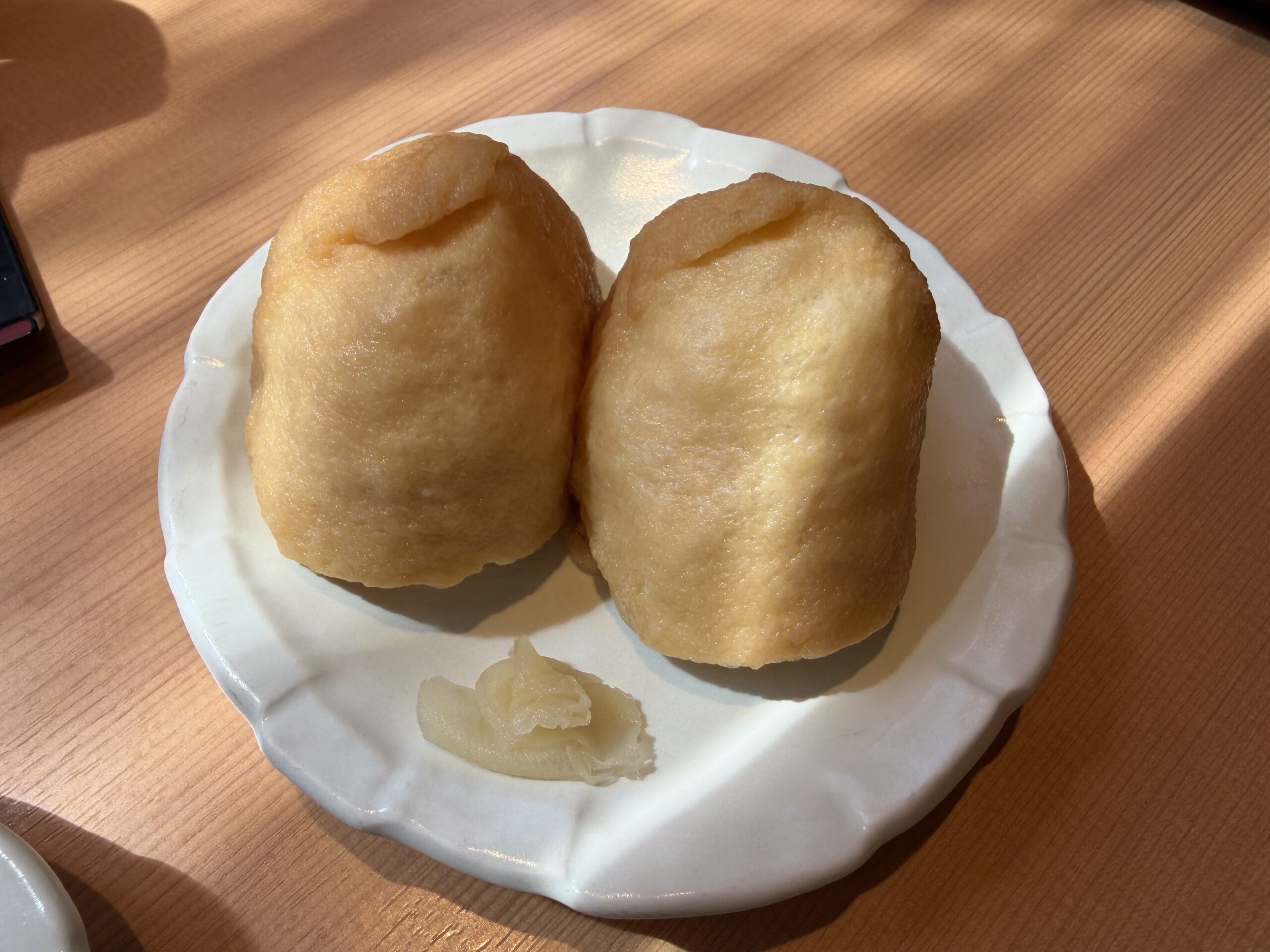 いなり寿司は家内とシェアするつもりだったのですが、蕎麦を食べるのがやっととのことで二個とも私がいただきました。