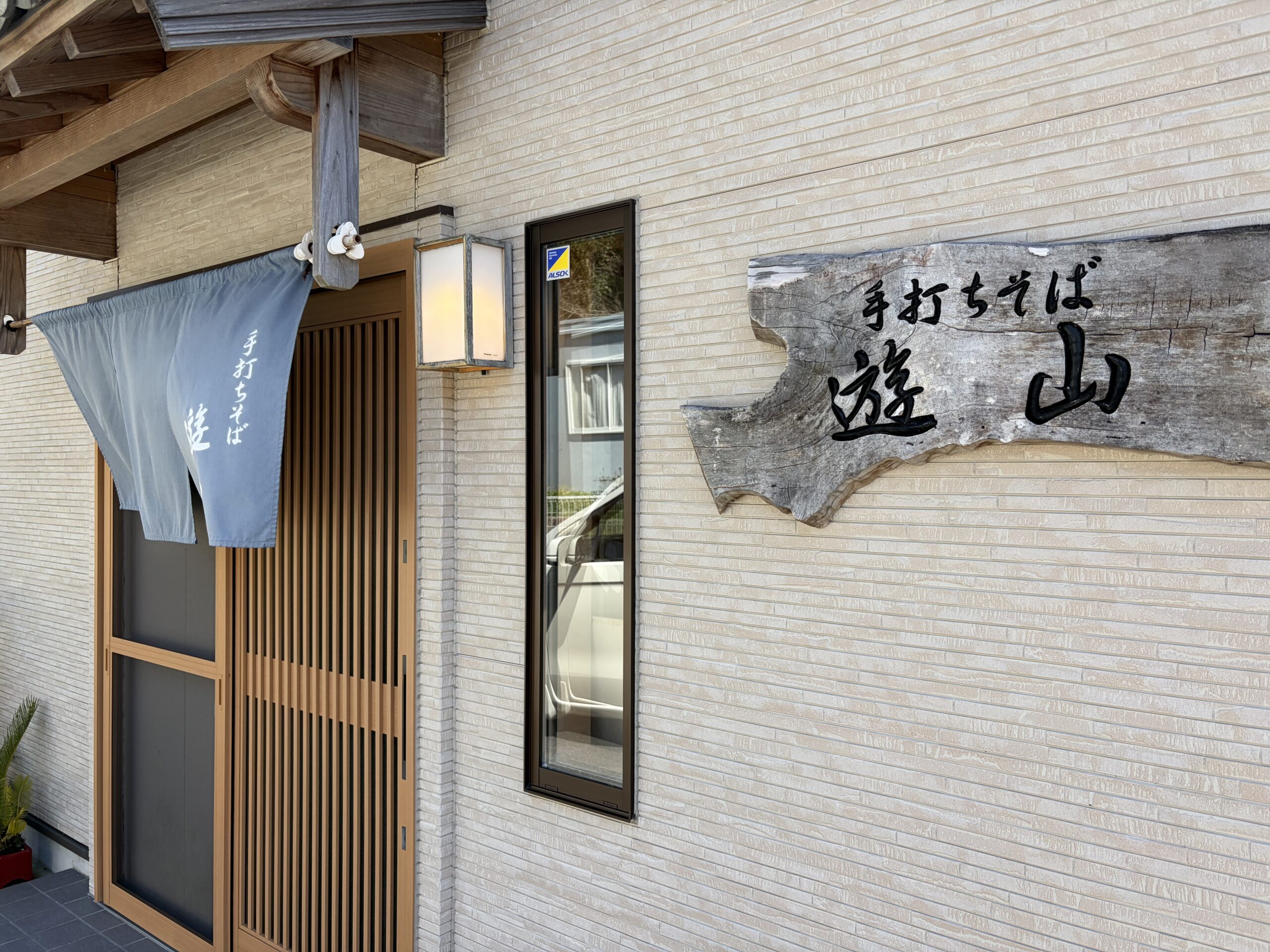 家内のリクエストで今日のお昼は「遊山」でいただくことになりました。開店時間に間に合う時間だったので早々に出発。11:30の開店時間に店に着くと数台の車が停まっていて暖簾がかかっていました。
