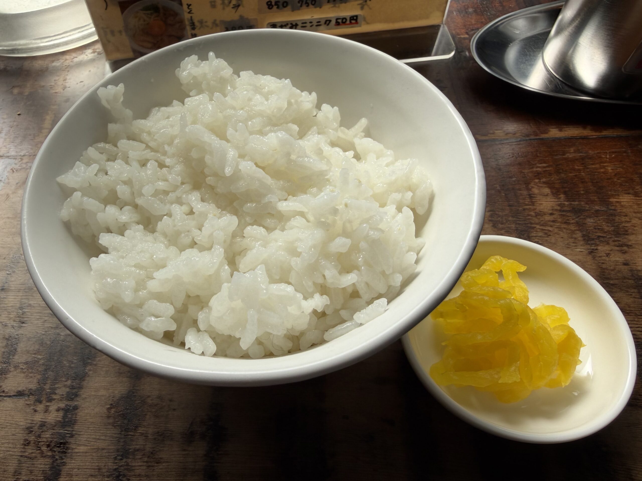 ご飯は丁度良い量です。付け合わせの沢庵が嬉しいところ。