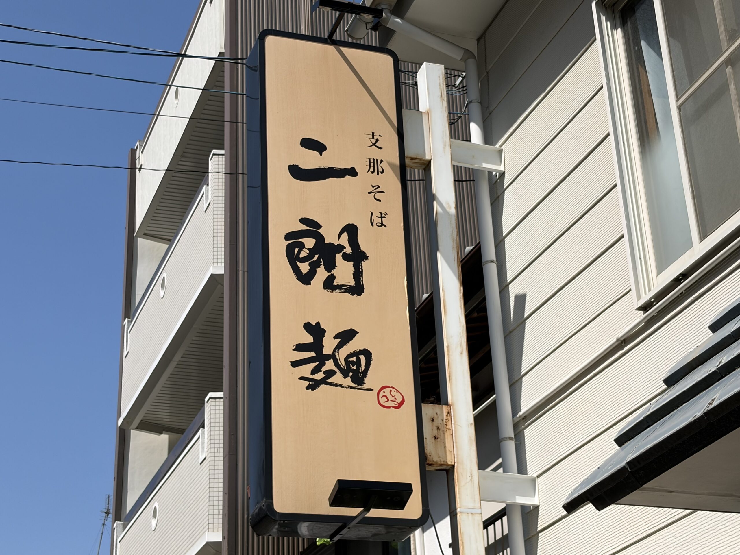 今日のお昼は一人飯になったので久しぶりに「二朗麺」で支那そばをいただくことにしました。駐車場が少ないので11時の開店に間に合うように家を出ました。店に着くと既に店の前で三人ほどのお客さまが開店を待っていました。店の横の駐車場に空きがあったので路地を回って車を停めました。ちょうど開店準備が整って暖簾をかけるところでした。