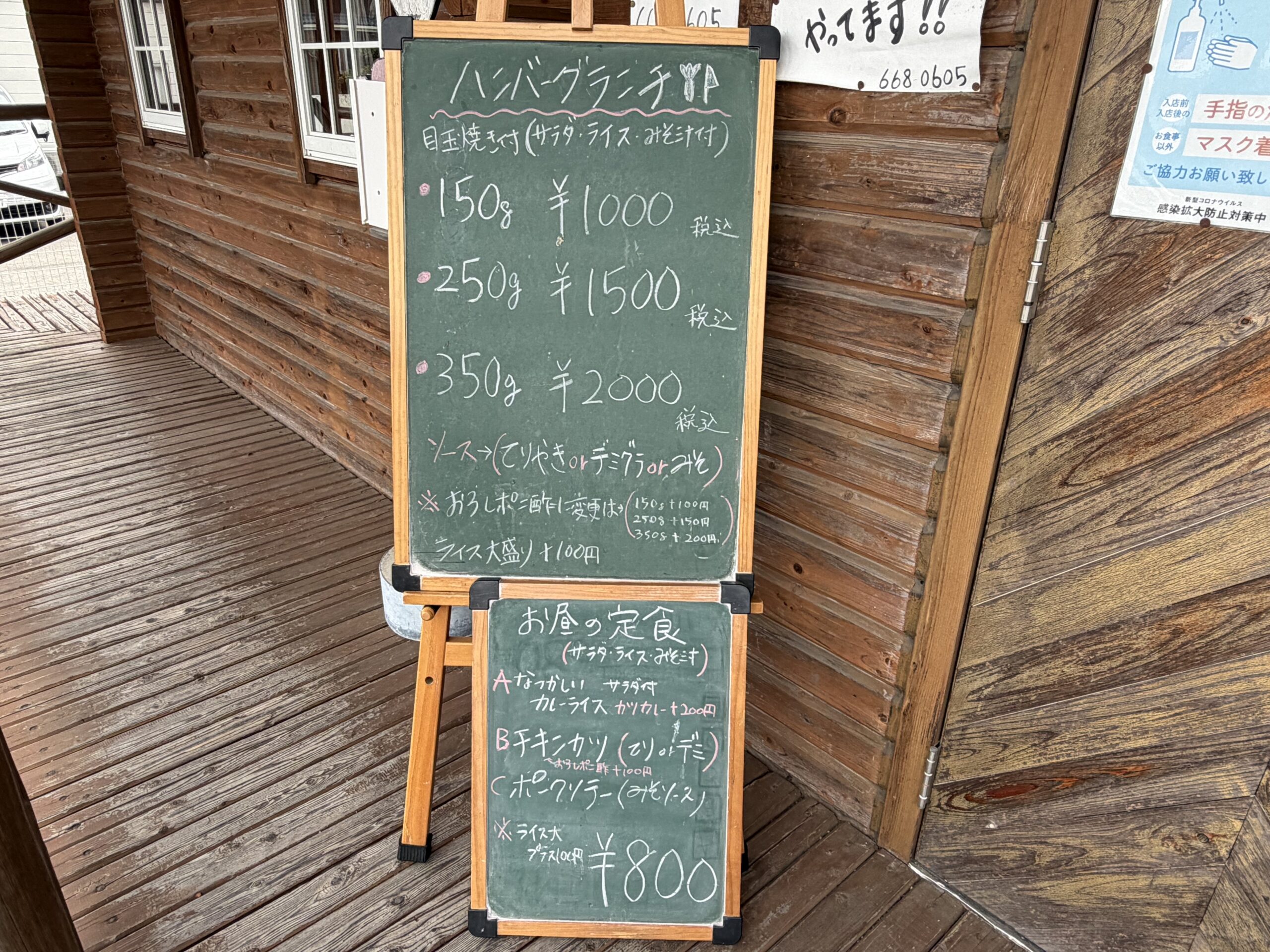 これで注文が決まりました。家内はハンバーグランチ150gの味噌ソース、私はハンバーグランチ150gのデミグラスソースです。