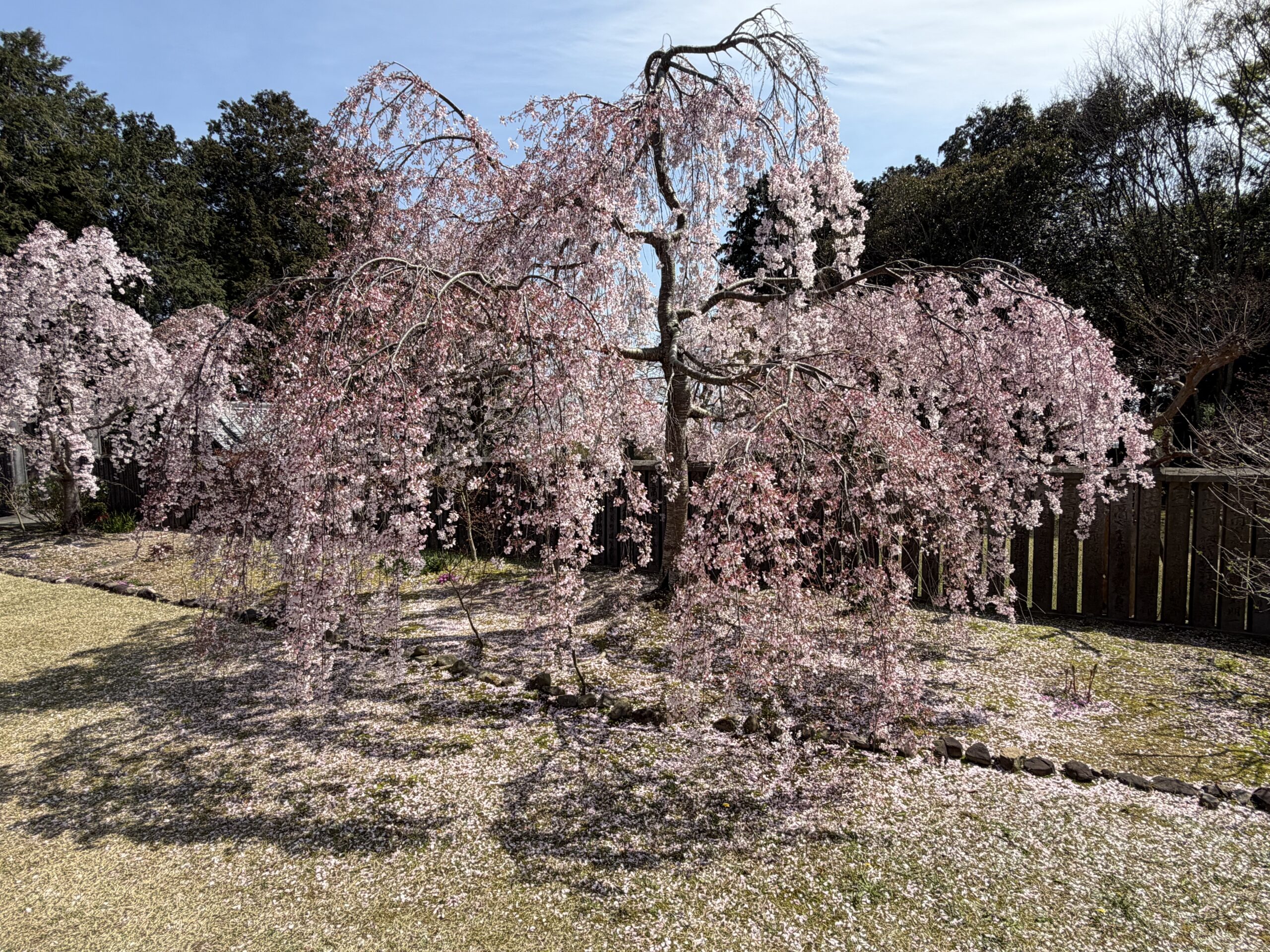 五百羅漢の横に立派な枝垂れ桜が植わっていました。一本は大分散っています。