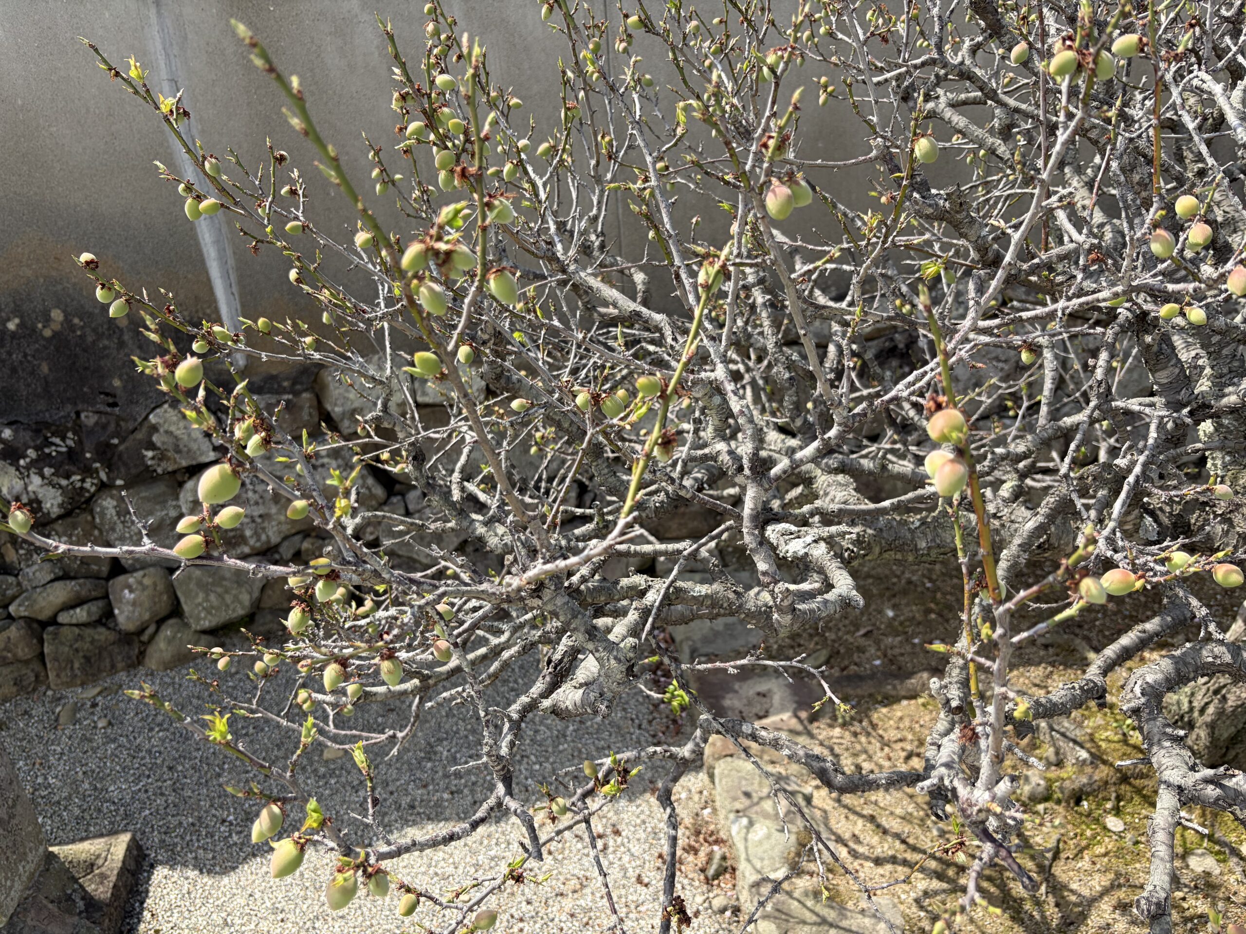 五百羅漢に向かう道の脇に植わっている梅の木には小さな実がついていました。