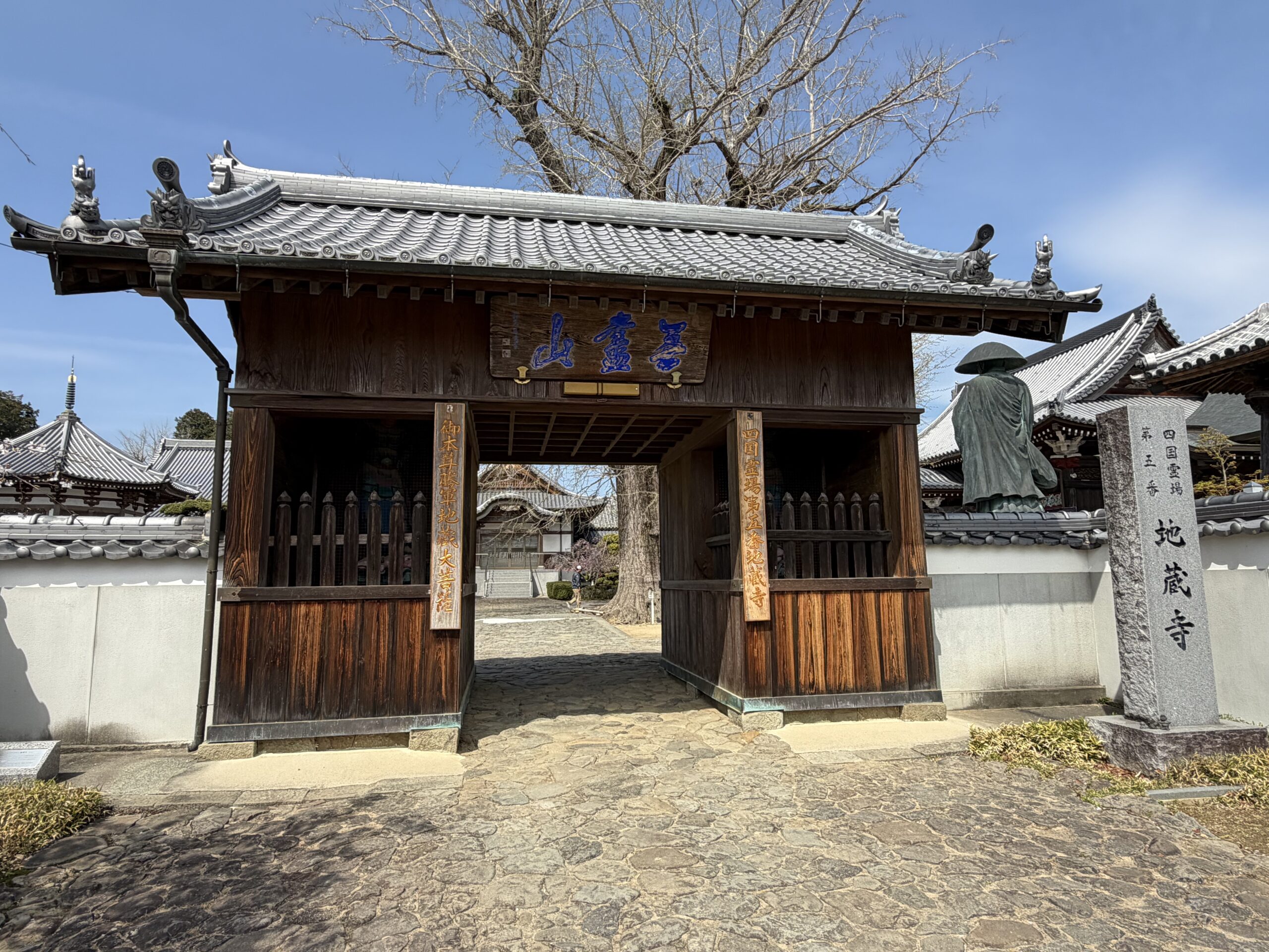 直心庵で蕎麦をいただいた後、家内のリクエストで五番札所地蔵寺に桜を観に行くことにしました。六条大橋を渡って山に向かって走ると山の麓に地蔵寺があります。