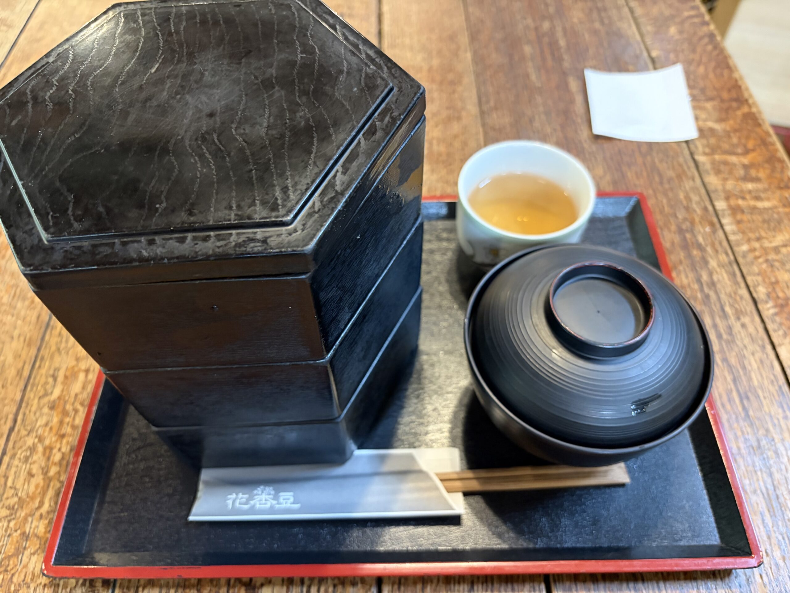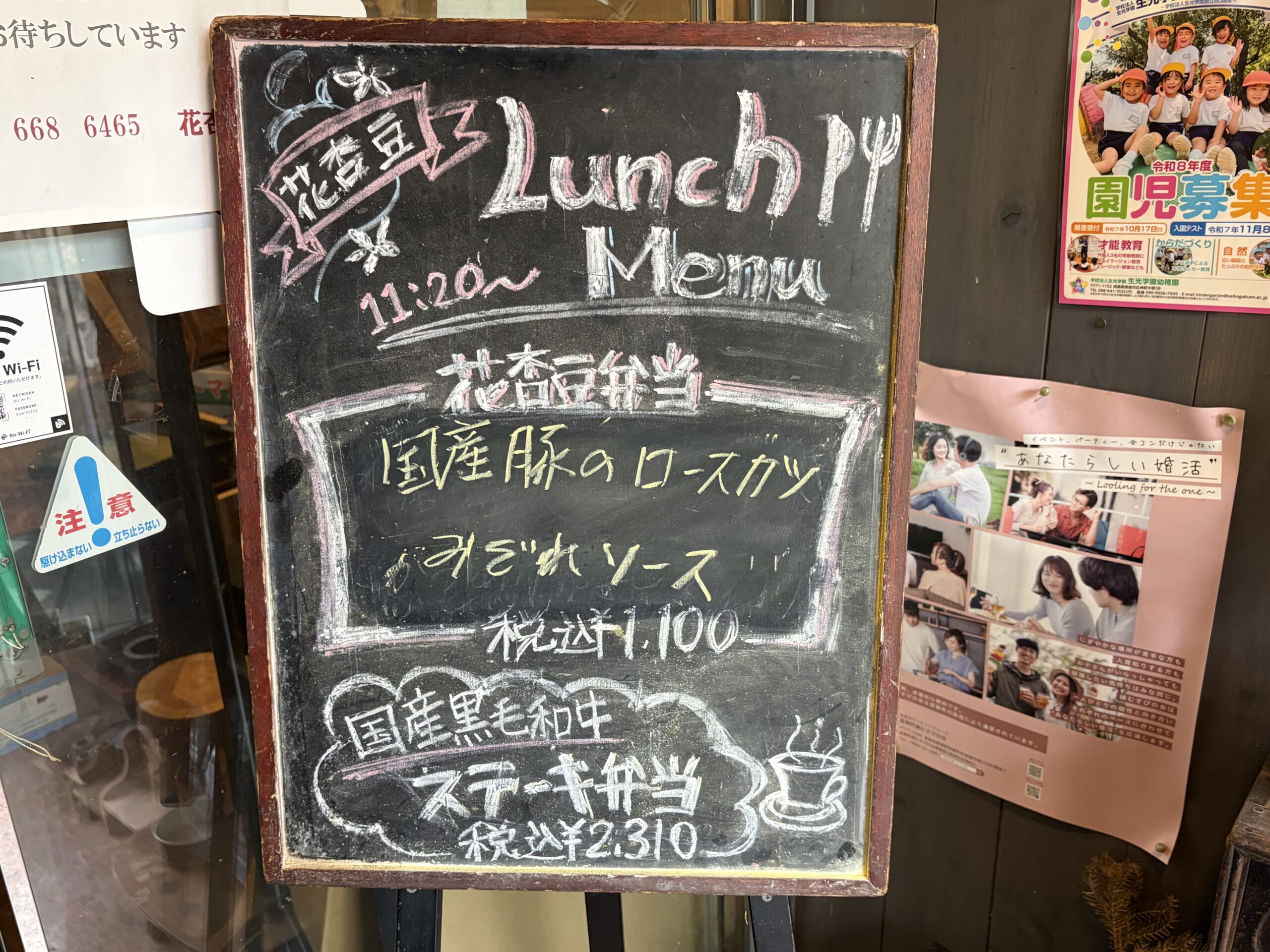 八万町の花杏豆で開催される「日曜日よりの試射」に参加させていただくことになったので、久しぶりに花杏豆でランチをいただくことにしました。12時30分頃に店に着くと駐車場には数台分の空きがあって直ぐに停めることができました。