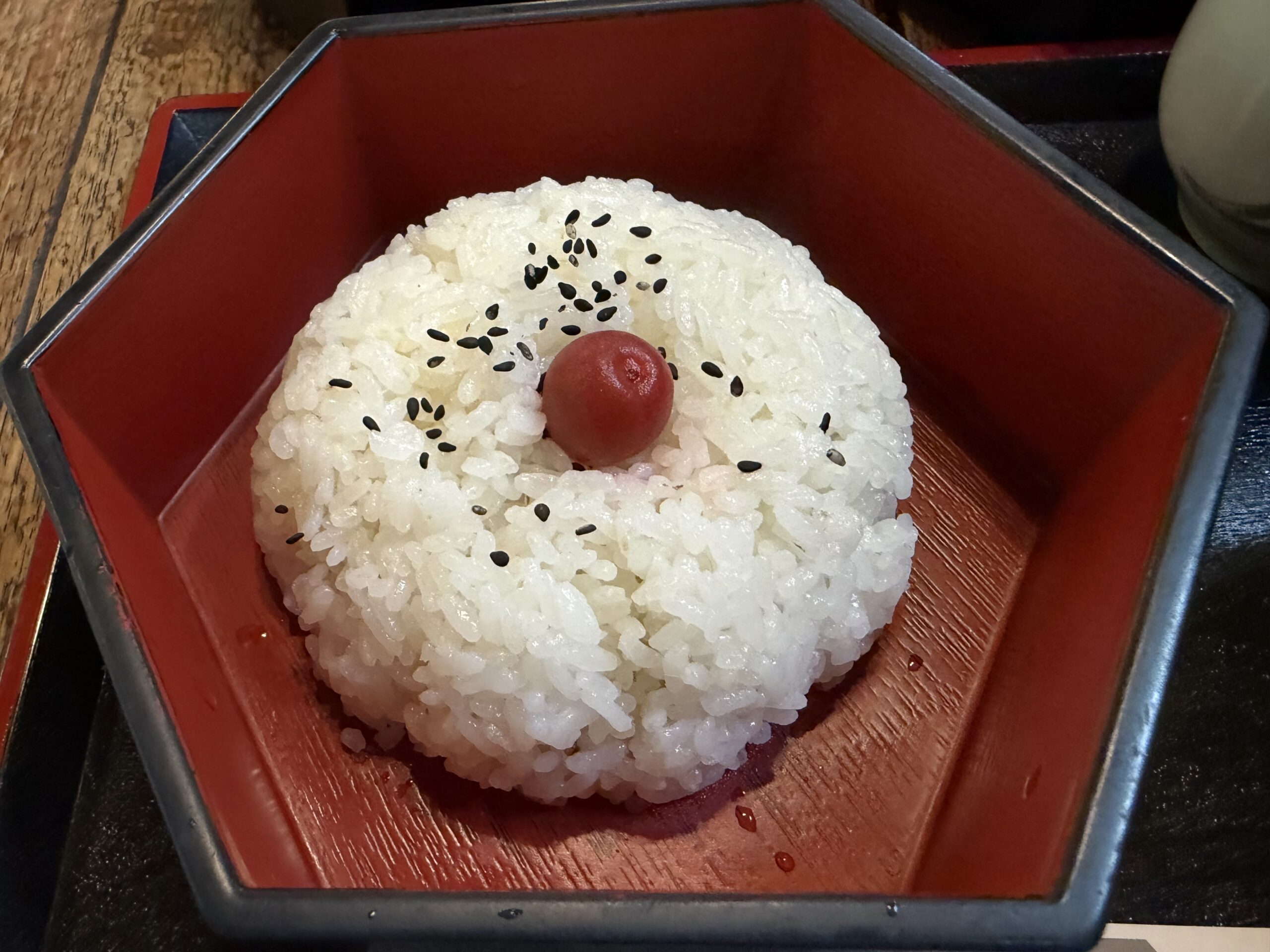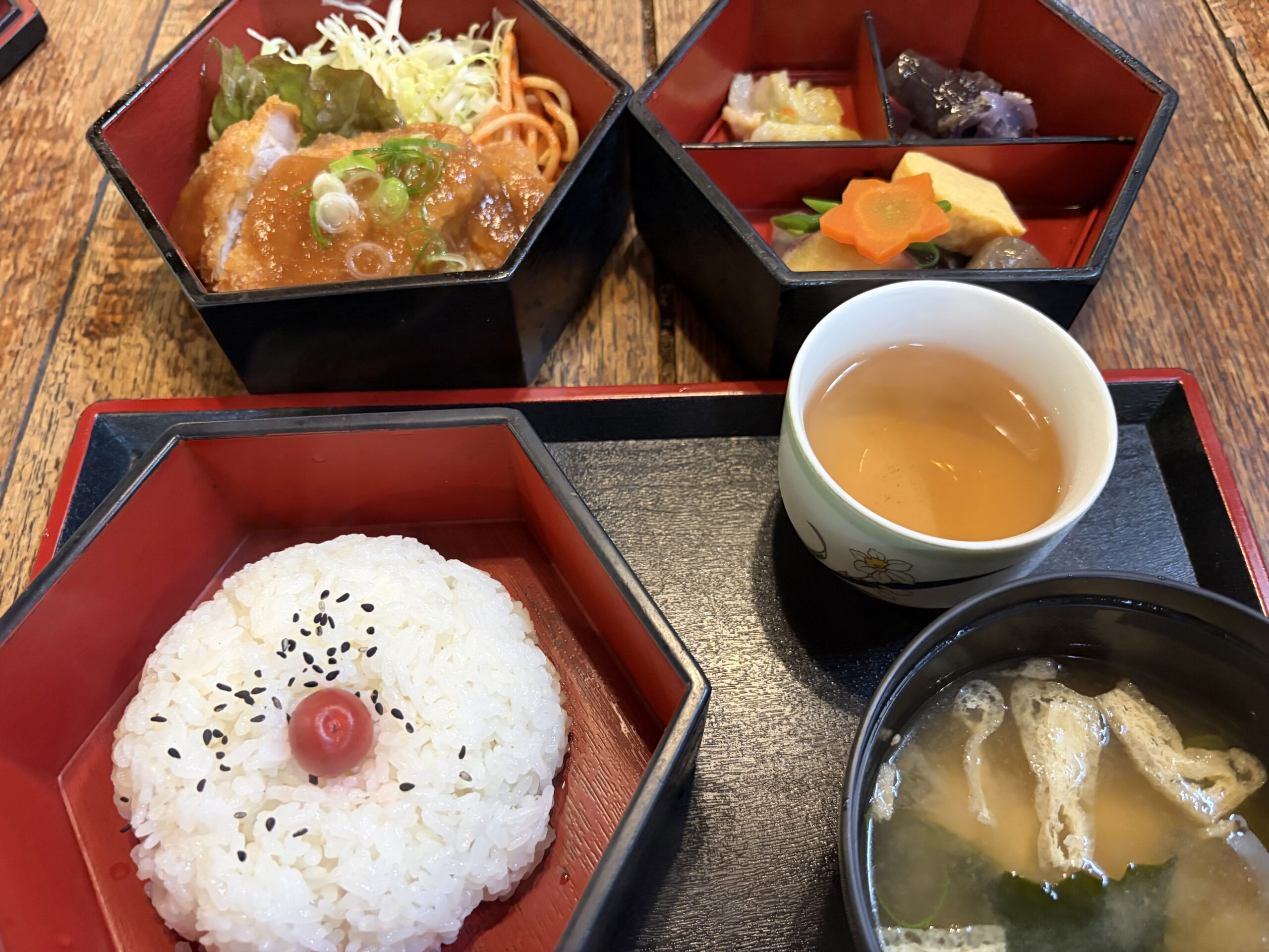 お目当ての花杏豆弁当の今日のメインは「国産豚のロースカツみぞれソース」です。店に入るとラッキーなことに空席があってこちらも直ぐに座ることができました。
