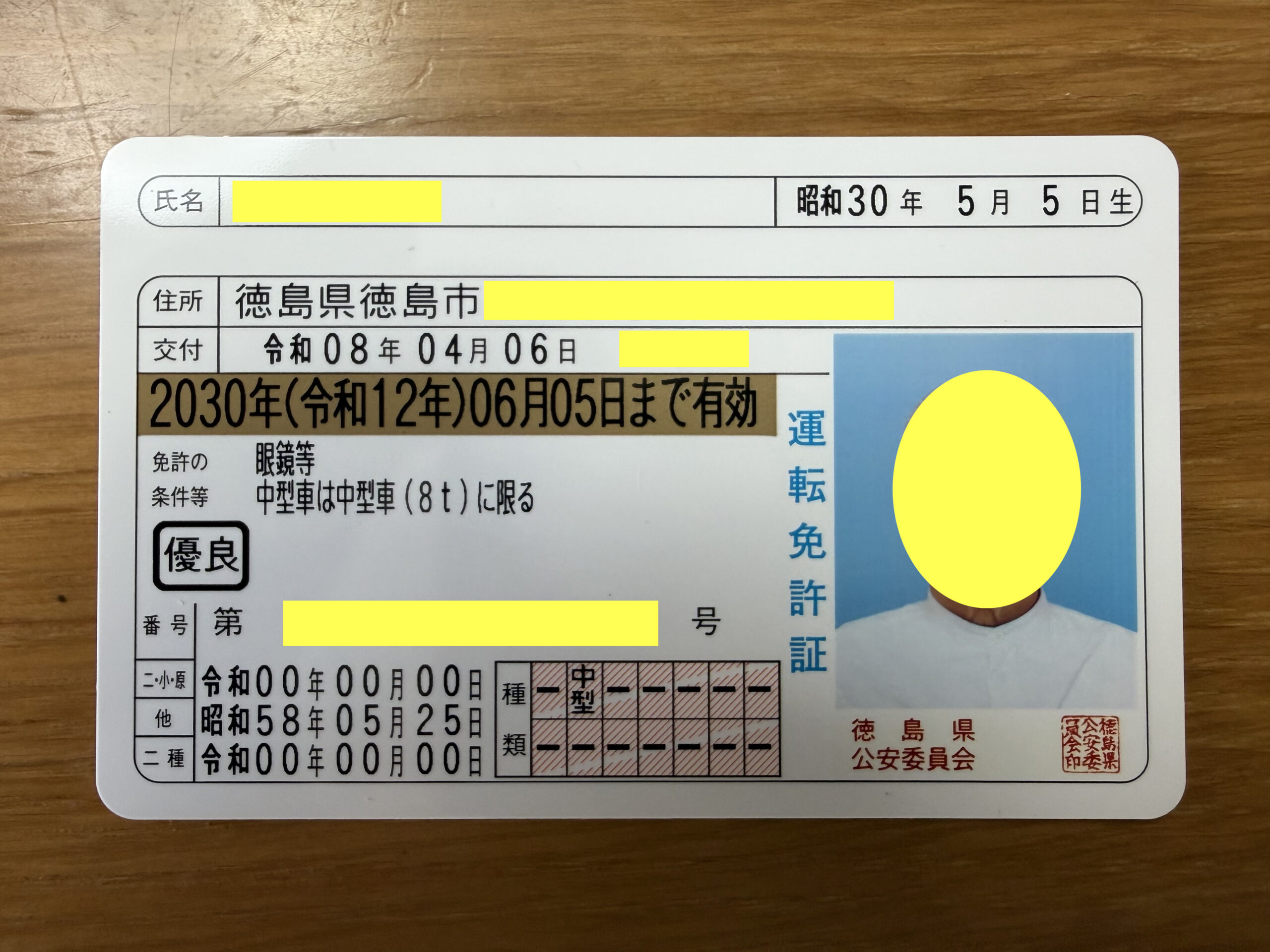 こちらが新しい免許証。有効期間が4年になっています。