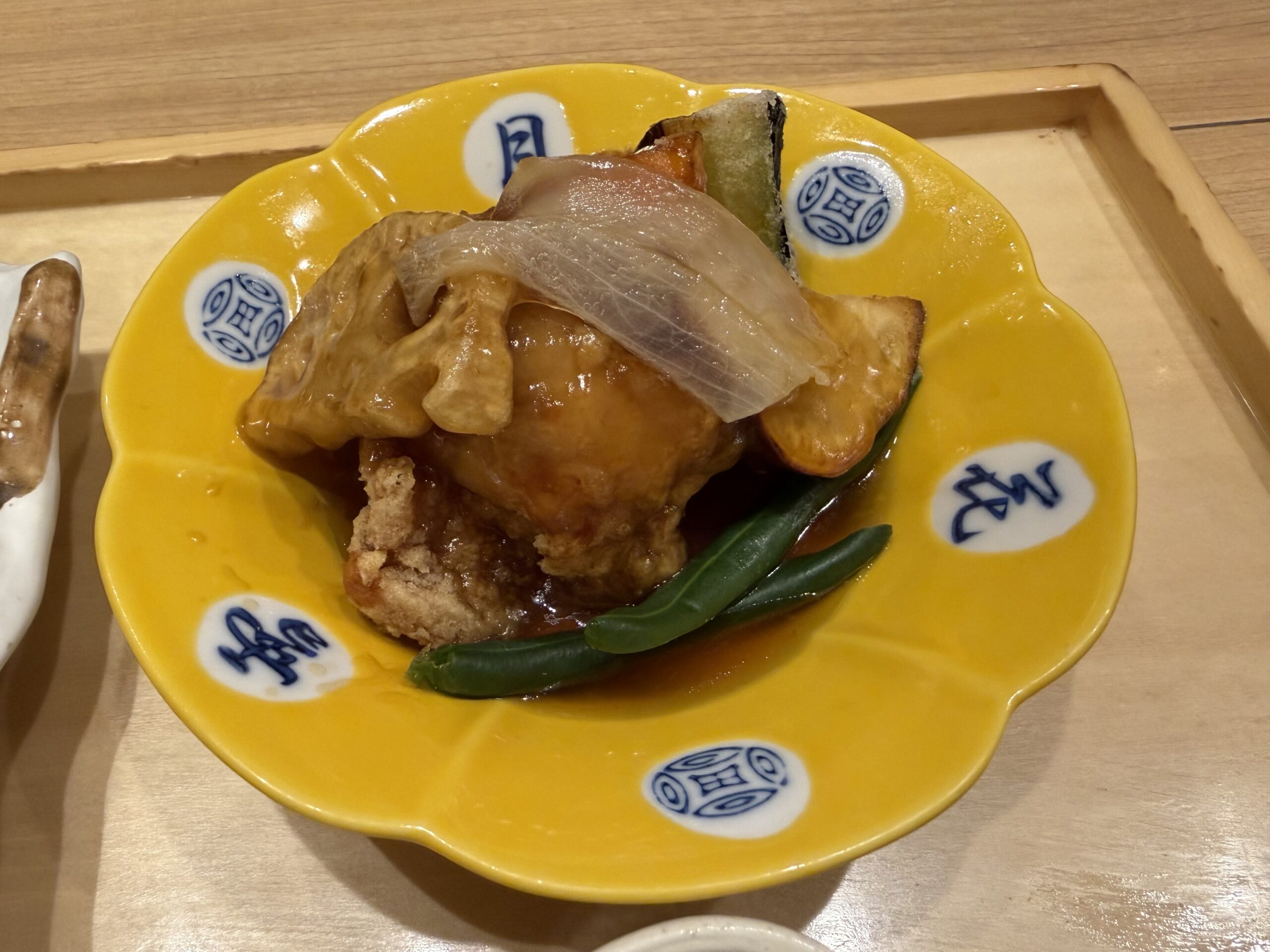 鶏の甘酢餡かけは大きな鶏の唐揚げが入っていて食べ応えがあります。