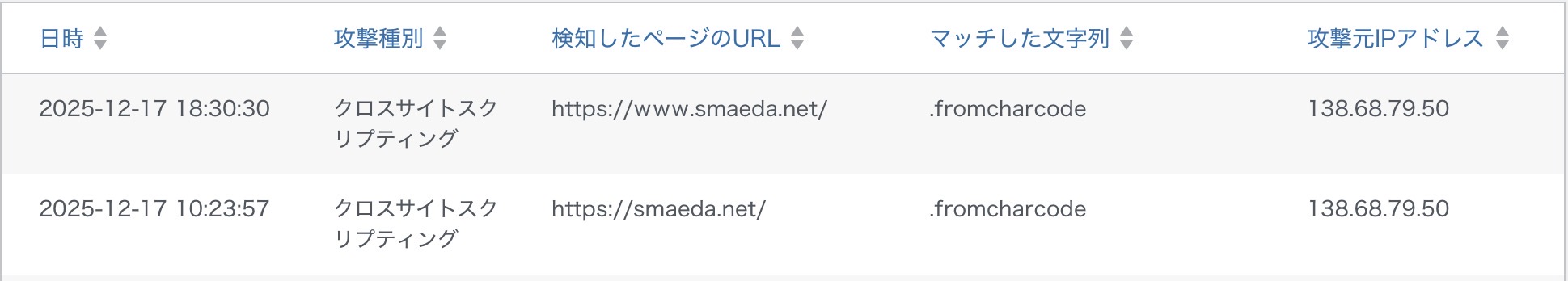 本日(12月17日)18:30に本日二度目の「クロスサイトスクリプティング」攻撃を受け、WAFがブロックしました。