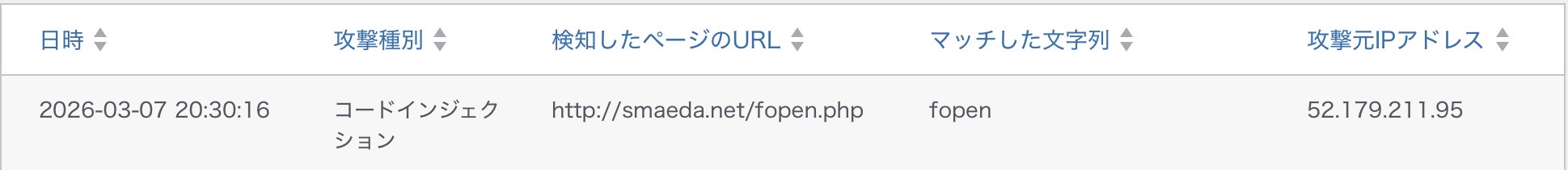 久しぶりに本日(2026年3月7日)20:30に「コードインジェクション」攻撃を受け、WAFがブロックしました。