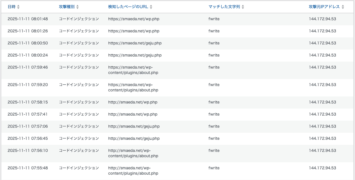 本日(2025年11月11日)7:55から8:01にかけて断続的に12回の「コードインジェクション」攻撃を受け、WAFがブロックしました。攻撃元のIPアドレスはアメリカのFranTech Solutions社を指していました。この会社は防弾ホスティングサービスプロバイダーと呼ばれているホスティングプロバイダーだそうです。