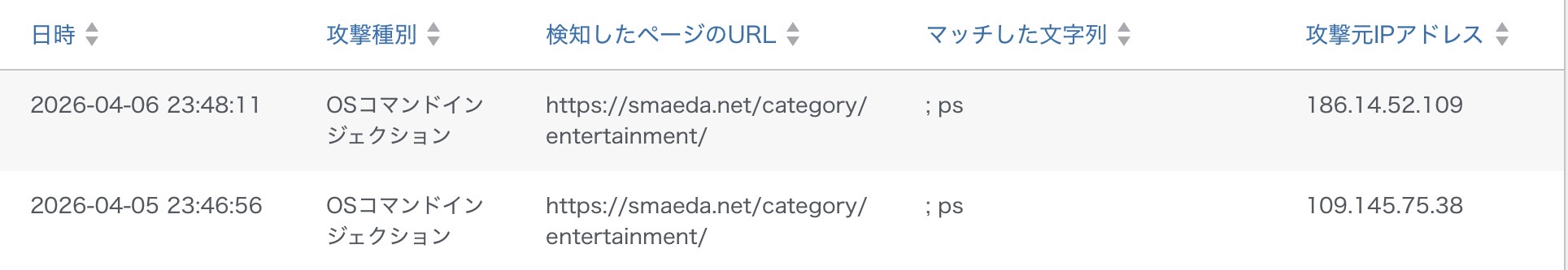 昨日(2026年4月6日)23:48、「OSコマンドインジェクション」攻撃を受け、WAFがブロックしました。