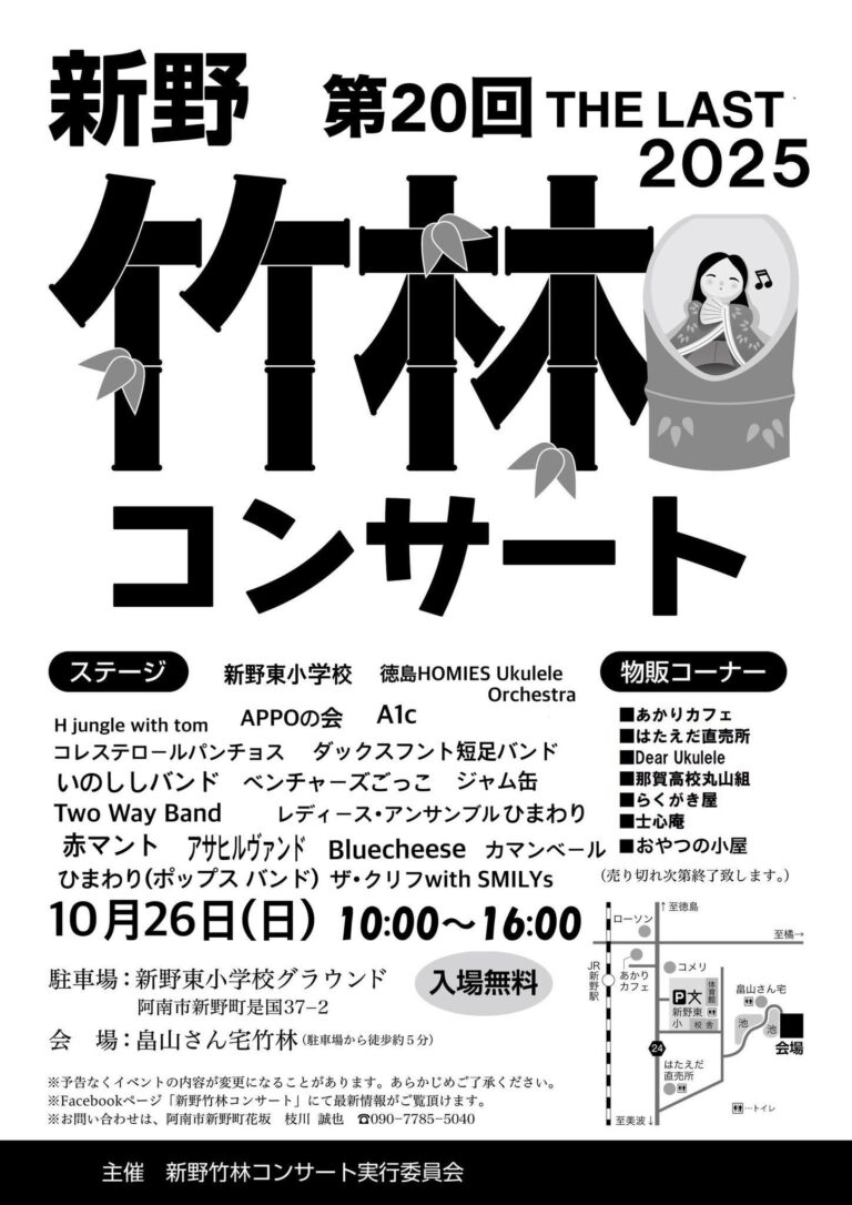 E川さんが主催されている新野竹林コンサートが本日の第20回を持って終了するというので初めてお邪魔することにしました。 タイムスケジュールも発表されていたので「ダックスフント短足バンド」に間に合えばと思いながら家を出ましたが、駐車場に指定されている新野 […]